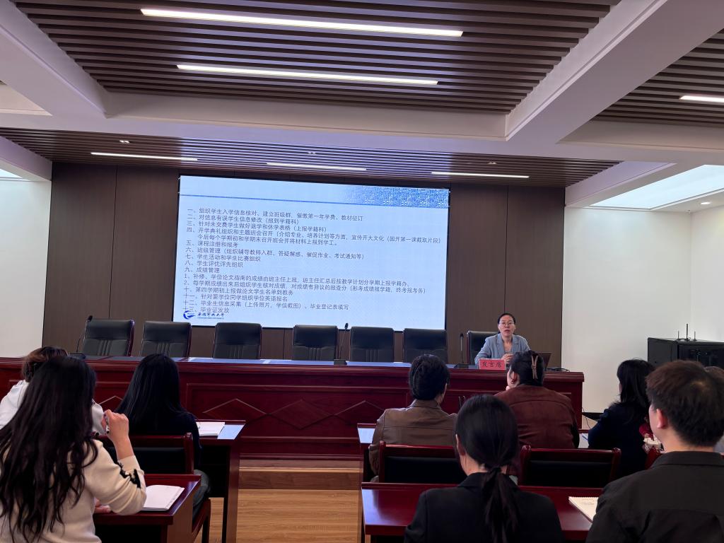 本次培訓創新采用“政策解讀+場景演練+經驗共享”三維模式,由學工辦、學籍辦、考務辦聯合打造沉浸式學習體驗:學工部門結合制定的《班主任工作手冊》系統講解了班級建設、學生心理輔導、學生活動、學生比賽、教學平臺使用、突發事件處理等實務技巧,介紹了學生獎勵的相關政策,將學生從入門到畢業的相關工作進行了系統梳理并積極分享優秀班主任的工作經驗,為新班主任今后工作指明方向。